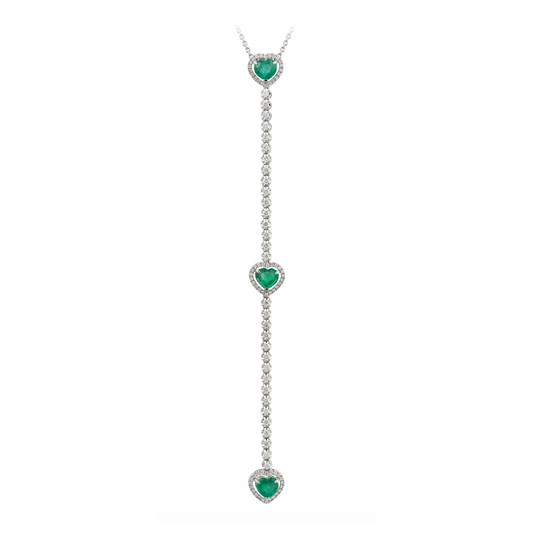 18K White Gold Diamond and Emerald Heart-Shaped Lariat