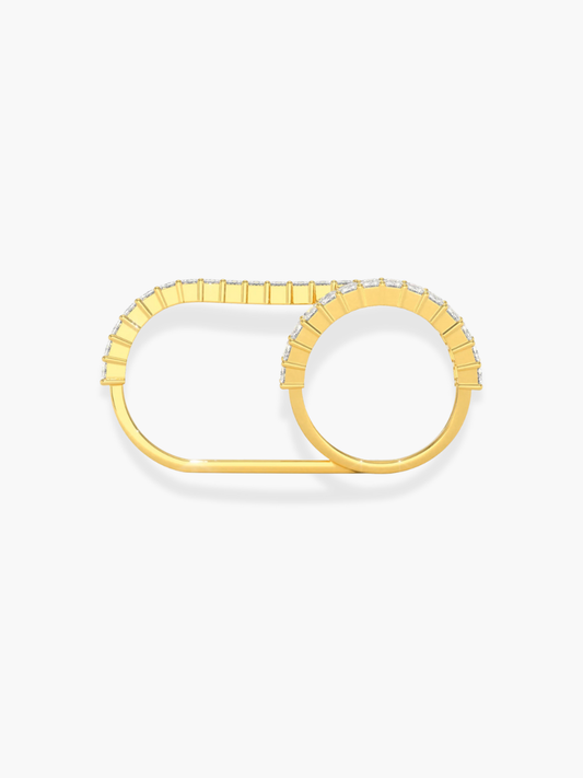 18K Yellow Gold Emerald Cut Double Finger Ring