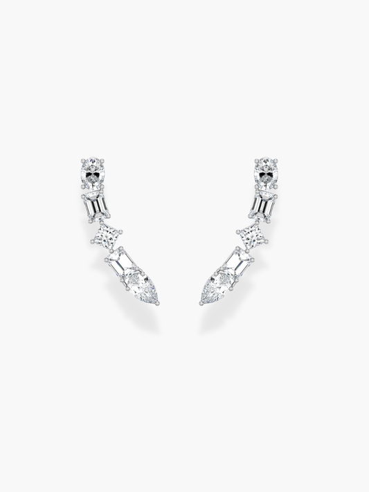 18k White Gold Diamond Climber Earrings
