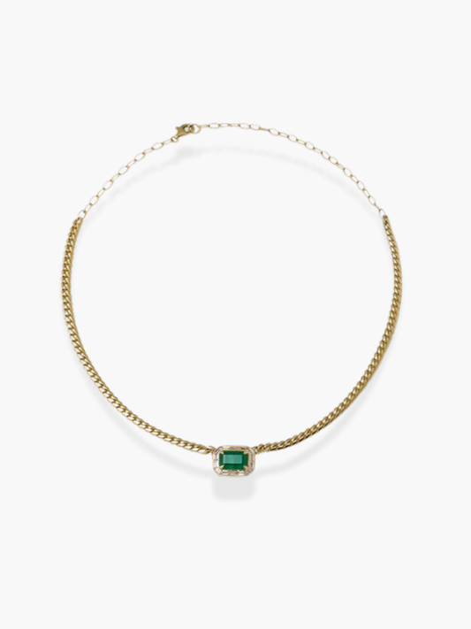 18K Yellow Gold Emerald Tubogas Italian Necklace