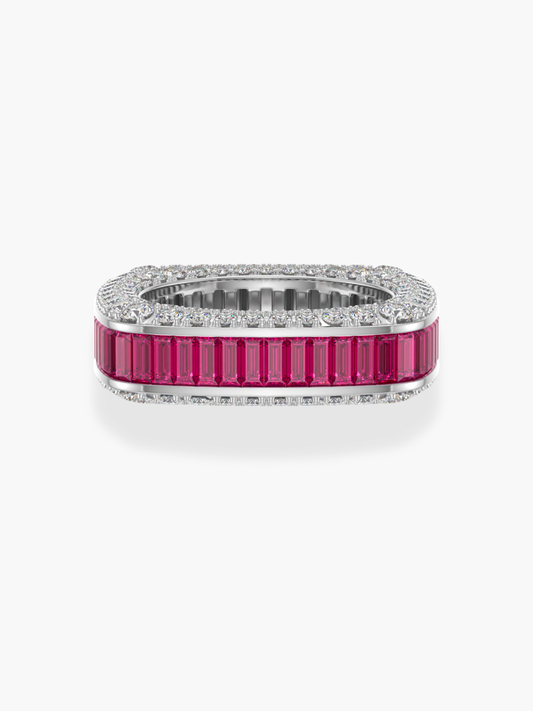 18k White Gold Squared Shape Diamond and Ruby Eternity Band Ring
