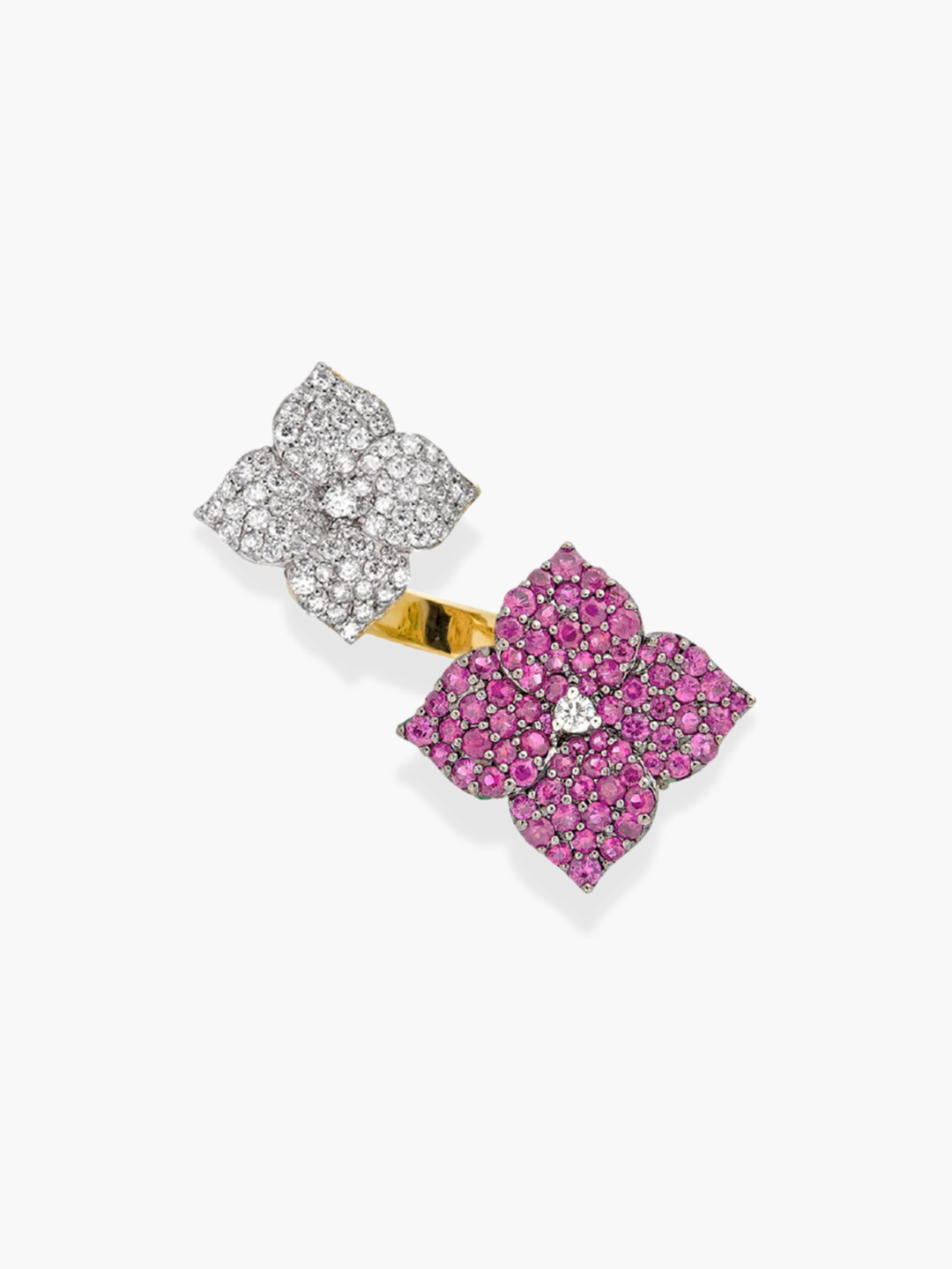 18k White Gold Diamond and Deep Pink Sapphire Piranesi Ring