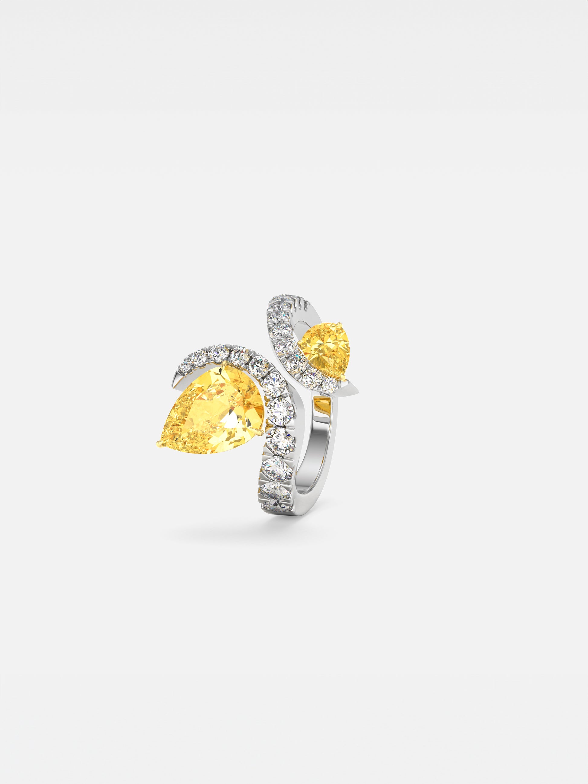 The Sienna Ring captures light and movement in a sculptural 18k white gold design. Two pear-shaped yellow sapphires surrounded by a trail of brilliant diamonds. Effortlessly modern yet timeless, this ring embodies Sienna’s radiant confidence and enduring beauty, a perfect harmony of strength and refinement.